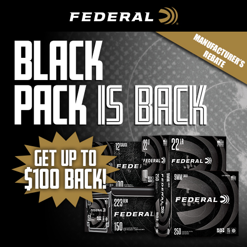 rounds). *Qualifying products limited to: Speed-Shok®, Speed-Shok Sea Duck, Speed-Shok Snow Goose, Rob Roberts Raptor Steel. **Offer excludes: Repackaged, remanufactured, and reloaded products. Minimum purchase of two (2) boxes (50 rounds) OR one (1) 100-count bulk pack✝ required. Maximum rebate $100.00 per person or household. ✝100-count bulk pack is equal to four (4) standard (25-round) boxes. *Offer includes Federal Hi-Power® shotshell ammunition. |